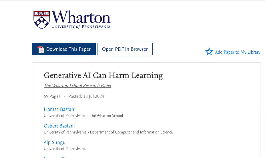 the ai didn't just fail to help them learn. it made them worse at math. btw the researchers ran it again because they didn't believe it. same results.