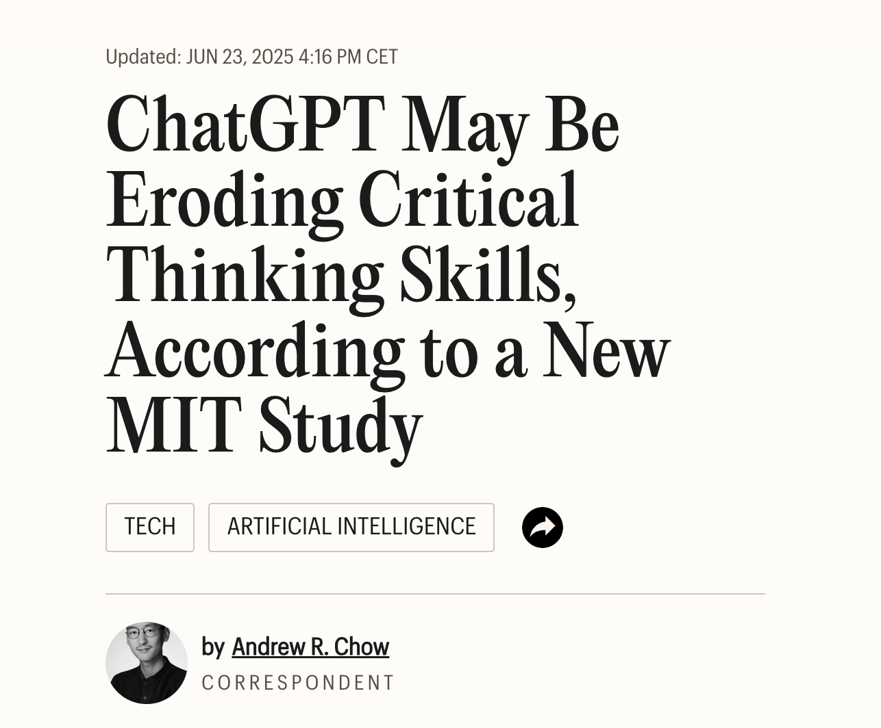 a 2025 study with 666 participants found "a significant negative correlation between frequent ai tool usage and critical thinking abilities." more ai use equals worse thinking. that's it.
