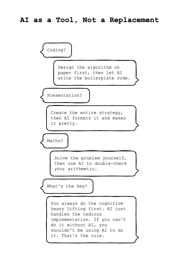 or use ai strategically. amplify thinking instead of replacing it. maintain struggle. preserve difficulty. keep your brain engaged.
