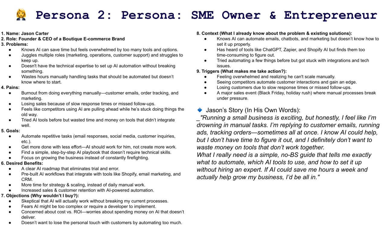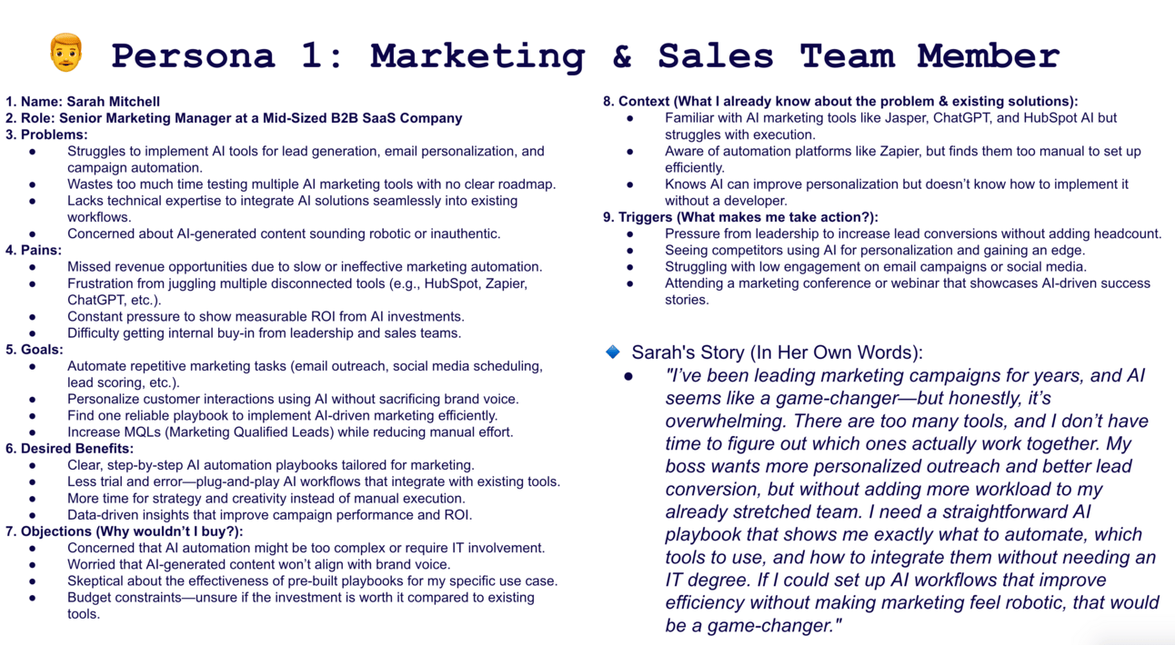 I need a straightforward AI playbook that shows me exactly what to automate, which tools to use, and how to integrate them without needing an IT degree. If I could set up AI workflows that improve efficiency without making marketing feel robotic, that would be a game-changer."