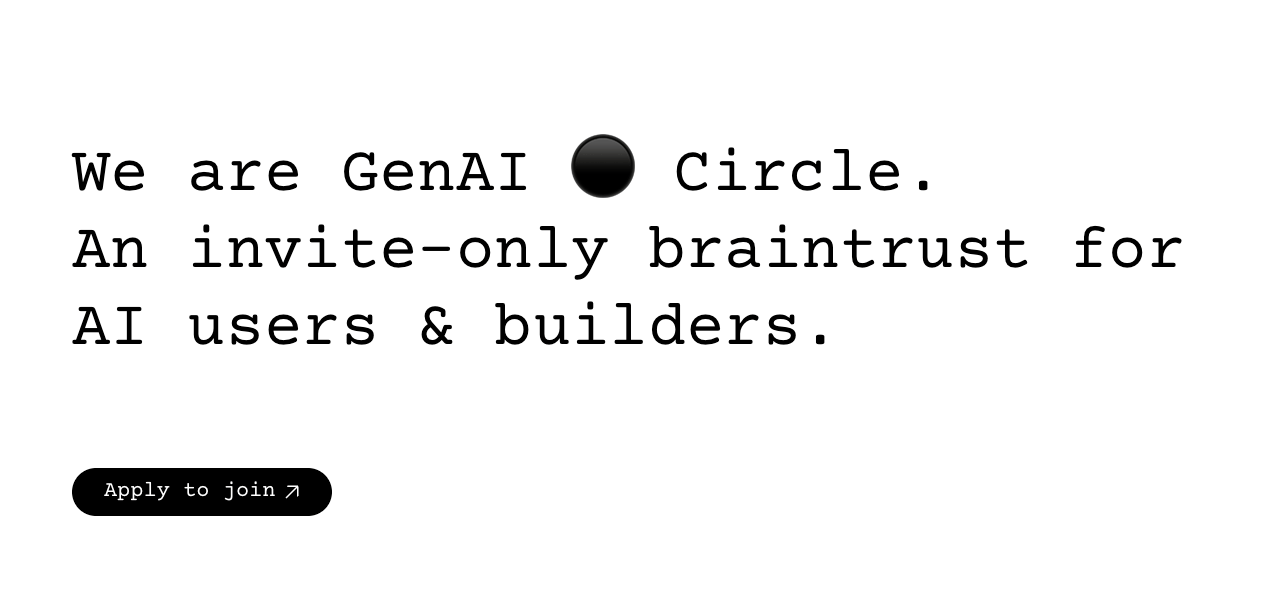 👋 btw, i run a community called genai ⚫️ circle. it’s where i learn everything i share. it’s invite-only. as a subscriber of this newsletter you can apply to join. check it out here: